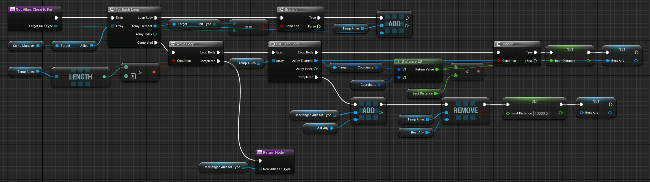 Next, the enemy collects all player units of the type (Balloon, Gunship, or Fighter) and sorts them in order of proximity. This allows the enemy to evaluate targets from nearest to farthest.