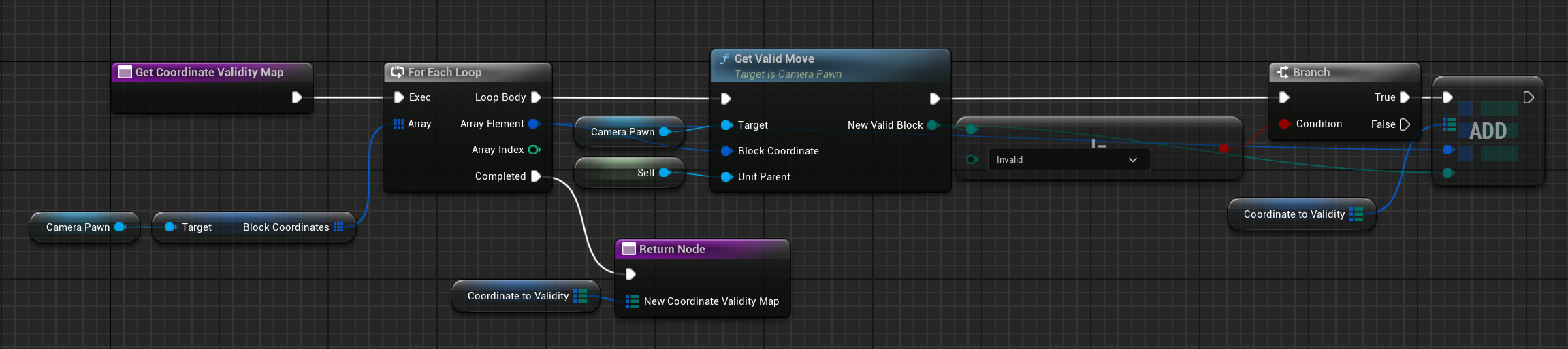 UnitData is later utilized in the CameraPawn blueprint which is responsible for player control, through the functions IsValidMove() and IsValidFire().