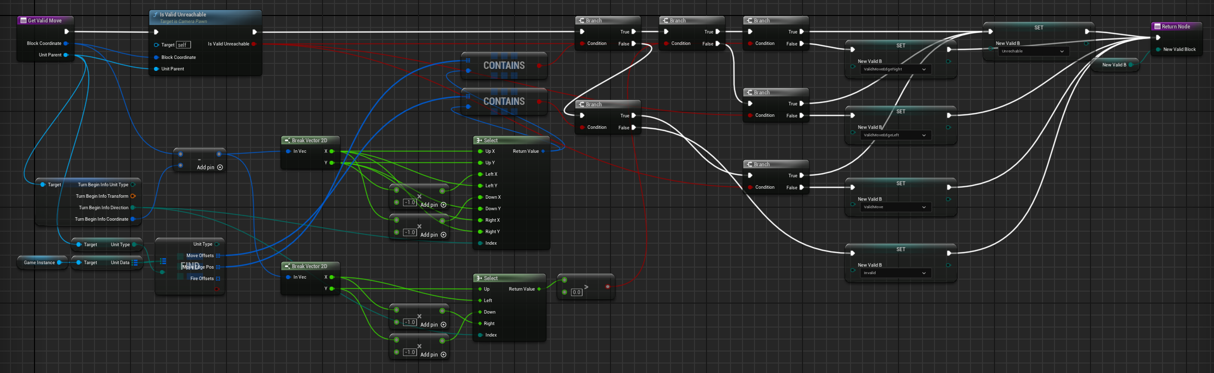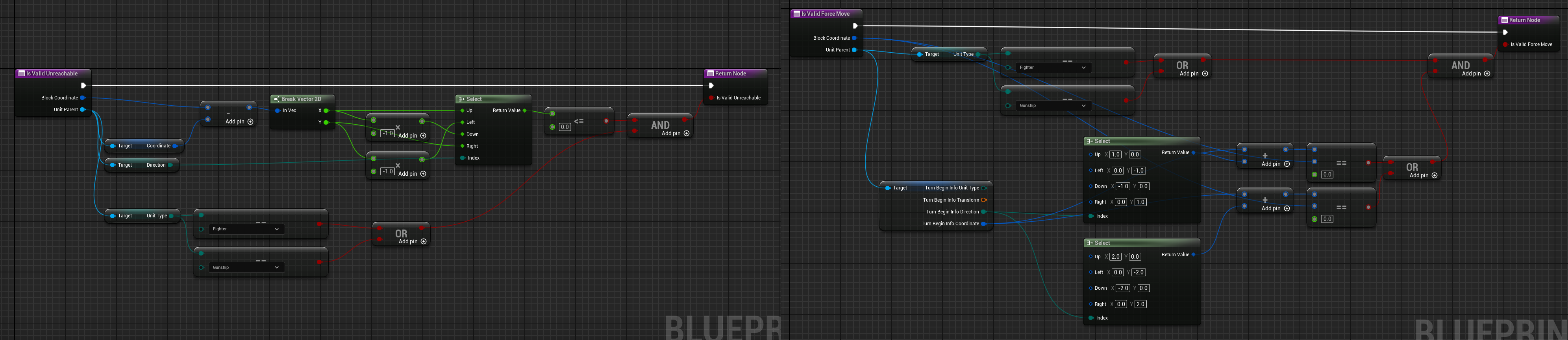 IsValidUnreachable() determines whether the selected tile is behind the unit. Since a plane cannot move backward, if the selected tile is located behind the unit, that tile’s type is immediately set to Unreachable.