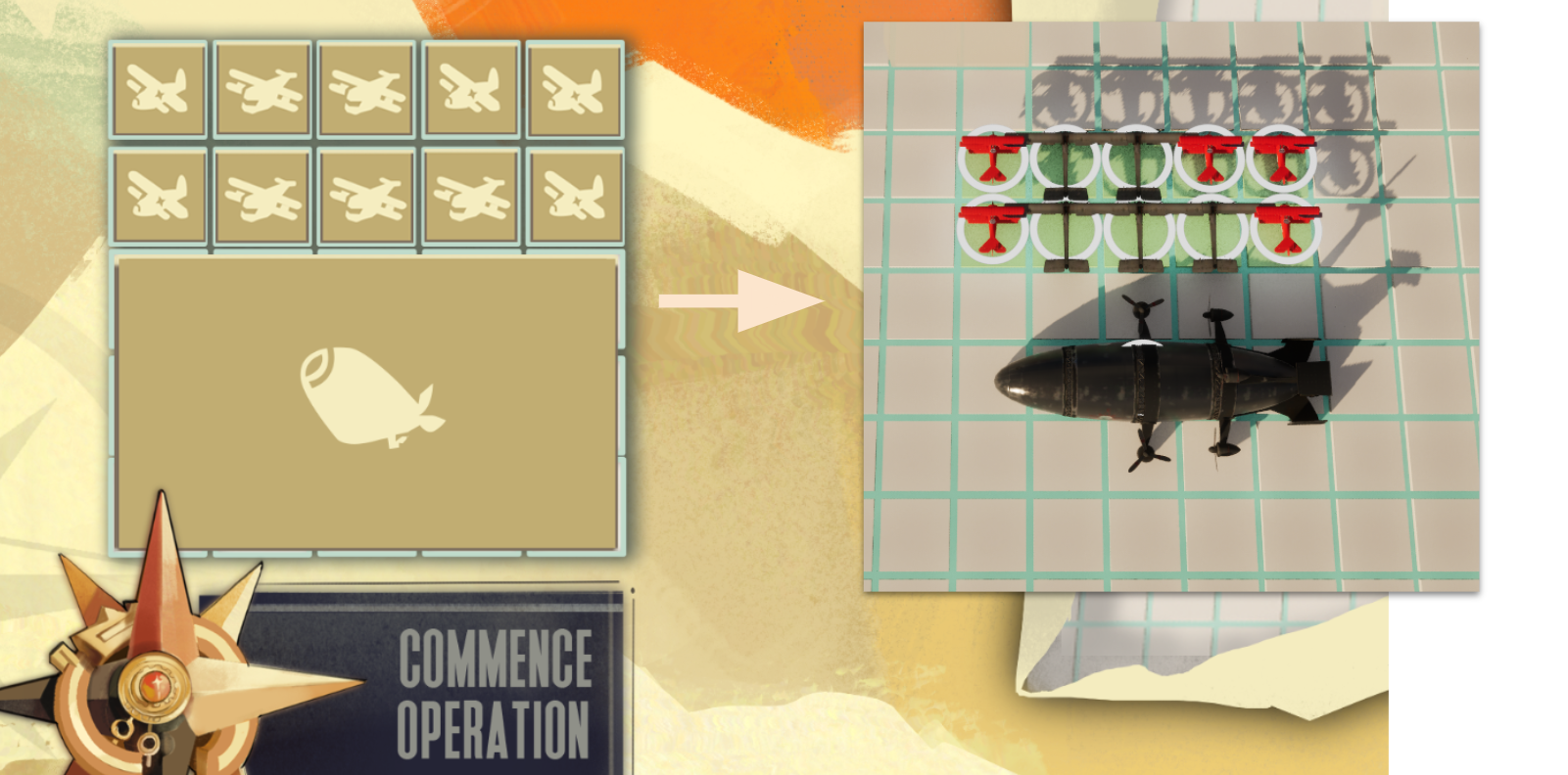 Planes require lift, so they cannot remain stationary in midair. Therefore, plane units must move forward a certain distance each turn. This is one of the key features that distinguishes this game from other turn-based titles, providing players with various tactical options.
