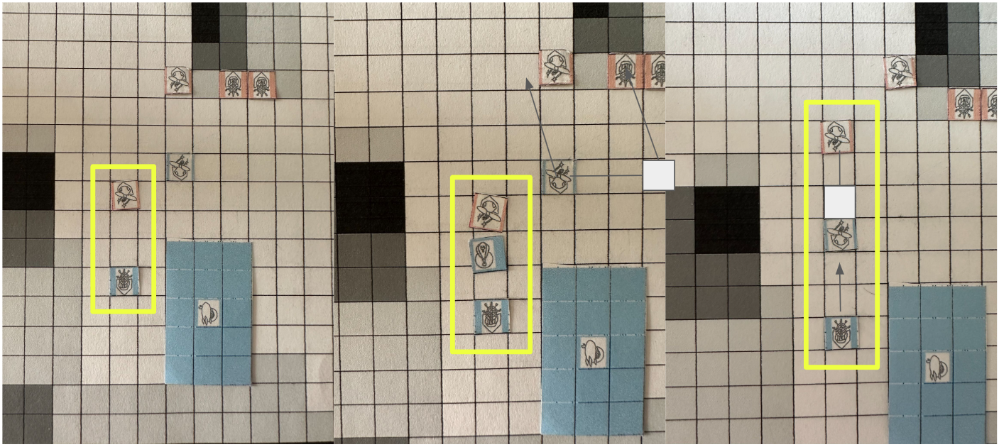 If an enemy unit survives with 1 HP, the player must decide whether to spend one more action to finish it off, or to attack another unit to gain a numerical advantage depending on the situation.